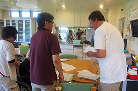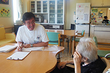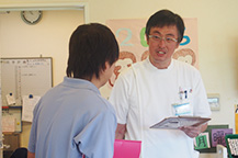 患者さまの日頃の様子や薬の効き具合、往診時に処方された薬についてなど、施設長とさまざまな情報交換をします。