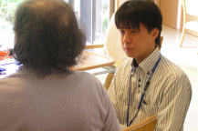 ④患者様への対応のあとは、施設のスタッフさんと打ち合わせ。主に薬についての情報交換。