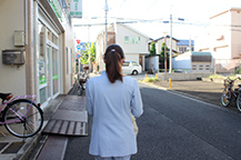 患者さん宅までは歩いて10分ほど。近いので徒歩で移動します。