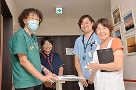業務の流れを聞かれても、どこの薬局でも同じですよね。流れよりも重要なのは、他職種との連携、地域連携が重要なことですよね。私たちは地域包括ケアシステムの中で、より関わりを深く、コミュニケーションをどのようにとっていくのかが重要なことです。地域での勉強会、打合せ、イベント、ボランティアなど多くの関わりを持ち、地域に浸透し寄り添う薬剤師となるように努力をしています。薬剤師だけでなく、全社一丸となり在宅医療への取組みに励んでいます。