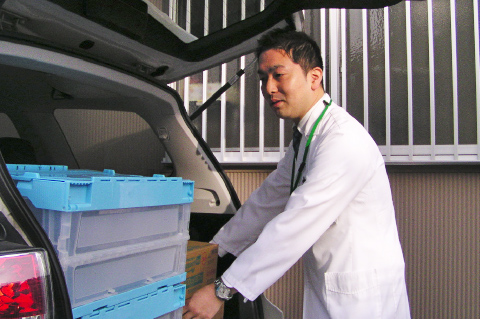 往診の最中にドクターから「この薬はすぐ取り寄せられるか?」「何を使ったらいいか?」など電話で問い合わせられることもあります。それと、いつでも連絡が取れるよう24時間携帯電話を持っています。 -